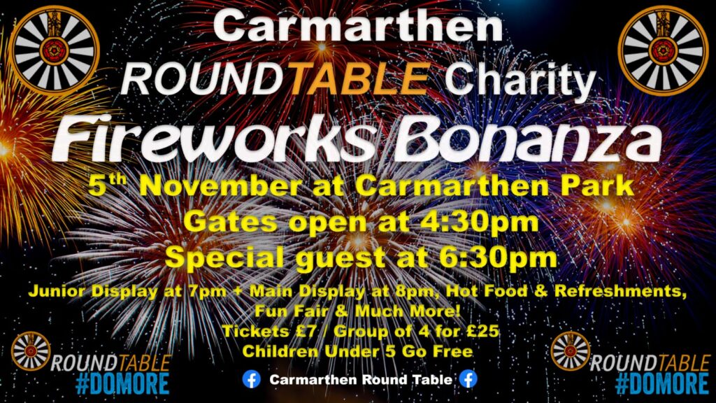 Bonfire Night! Join us again in November for 2025’s Fireworks Bonanza at Carmarthen Park ^^ Book above ^^^